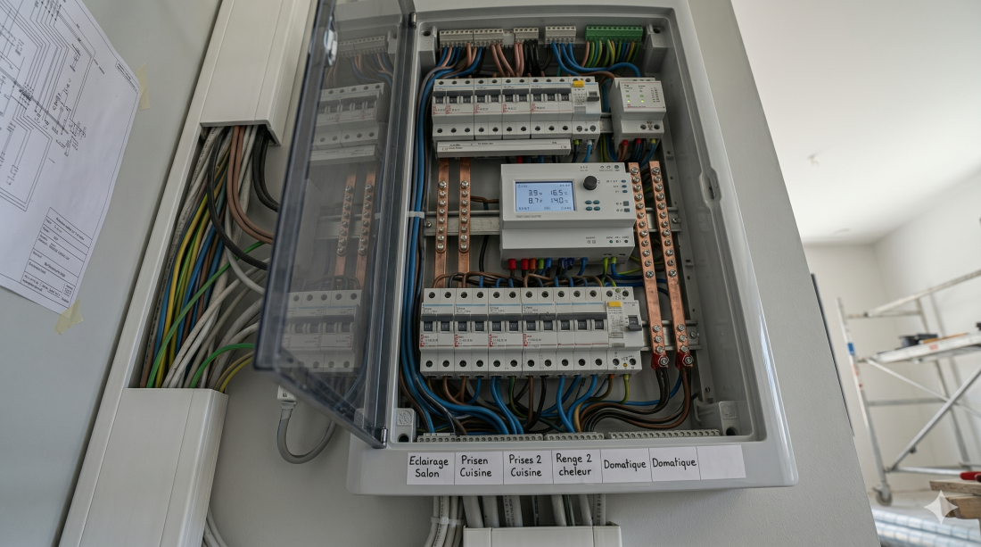Les villas contemporaines exigent une électricité à la fois sûre et intelligente. La problématique majeure : comment suivre en temps réel la consommation énergétique tout en protégeant efficacement l’installation contre les surtensions et la foudre ? Pour y répondre, nous intégrons des modules de gestion d’énergie, tels qu’un éco-compteur, permettant d’analyser votre consommation et d’identifier les sources d’économie. De plus, l’installation de disjoncteurs sélectifs et de parafoudres devient incontournable dans les zones exposées comme notre région, afin de sécuriser vos équipements et éviter toute coupure non désirée.